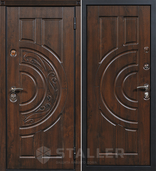Отделка снаружи: МДФ влагостойкий 16 мм, Покрытие: пленка Винорит (Корея). Цвет "Дуб тёмный", патина черная. Наличник ЛОГО