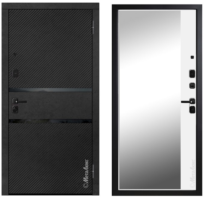 • Усиленные петли на подшипниках • Усиление замковой части металлическим карманом • Усиление зоны петель легированным металлом квадратного сечения • Полотно двери оснащено мощными противосъемными ригелями диаметром 16 мм (3 шт.) |