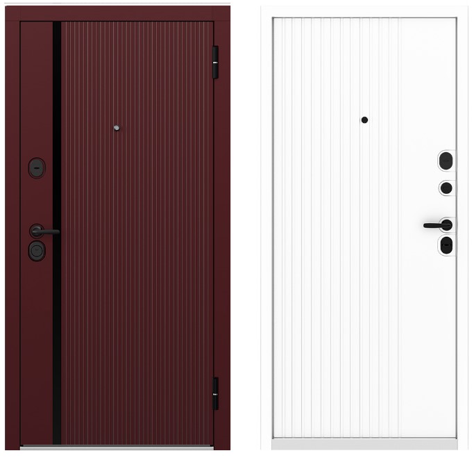 ОТДЕЛКА СНАРУЖИ Фрезерованная влагостойкая панель МДФ высокой плотности 16 мм, эмаль, цвет "Марсала" (цвет на выбор), вставка из нержавеющей стали цвет черный