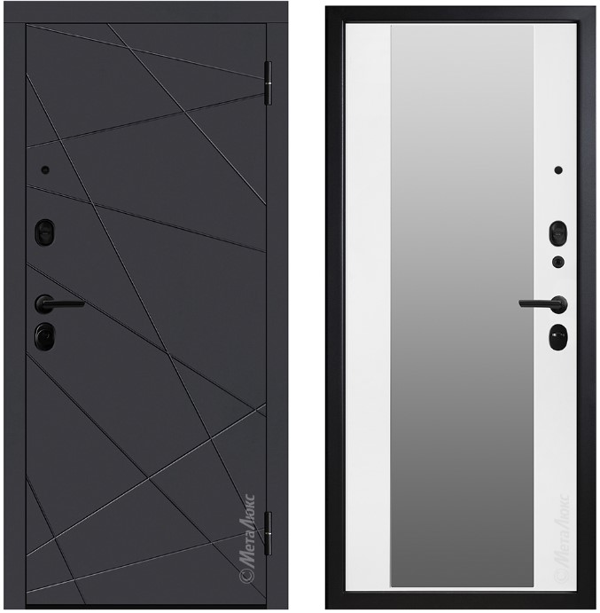 • Усиленные петли на подшипниках • Усиление замковой части металлическим карманом • Усиление зоны петель легированным металлом квадратного сечения • Полотно двери оснащено мощными противосъемными ригелями диаметром 16 мм (3 шт.) |