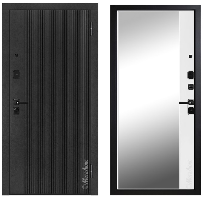• Усиленные петли на подшипниках • Усиление зоны петель легированным металлом квадратного сечения • Усиление замковой части металлическим карманом • Регулятор притвора (обеспечивает плотное прилегание дверного полотна к коробу) |