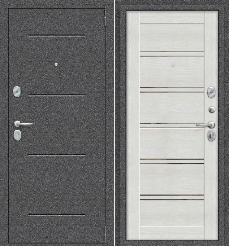 Три горизонтальных усиливающих омега-профиля (ребра) создают единую монолитную жесткость и прочность конструкции. Сверхпрочная конструкция «6x2» - двойная толщина стали профиля полотна, двух контуров коробки, в зонах замка и петель. Дополнительную стойкость ко взлому обеспечивают два противосъемных штыря с цинковым покрытием (для защиты металла от коррозии).