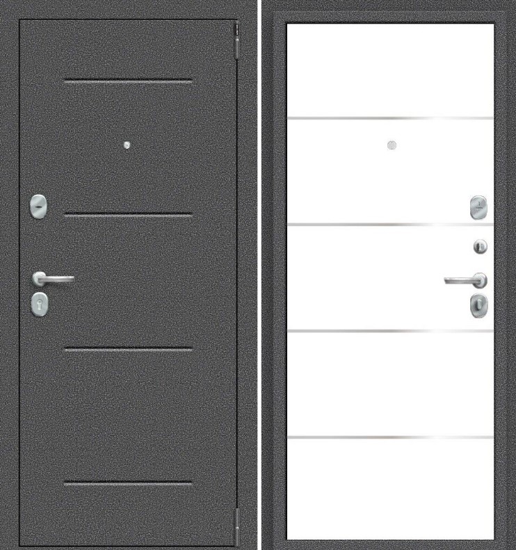 Три горизонтальных усиливающих омега-профиля (ребра) создают единую монолитную жесткость и прочность конструкции. Сверхпрочная конструкция «6x2» - двойная толщина стали профиля полотна, двух контуров коробки, в зонах замка и петель. Дополнительную стойкость ко взлому обеспечивают два противосъемных штыря с цинковым покрытием (для защиты металла от коррозии).