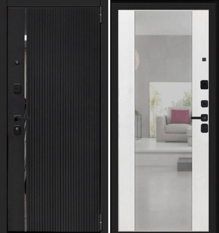 Три горизонтальных усиливающих омега-профиля (ребра) создают единую монолитную жесткость и прочность конструкции. Сверхпрочная конструкция «6x2» - двойная толщина стали профиля полотна, двух контуров коробки, в зонах замка и петель. Дополнительную стойкость ко взлому обеспечивают два противосъемных штыря с цинковым покрытием (для защиты металла от коррозии).