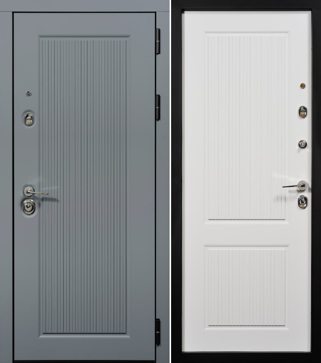 Атмосферостойкое порошково-полимерное «Чёрный муар». Внешняя отделка: МДФ-панель влагостойкая 16 мм, фрезеровка ЮР-31, покрытие эмаль RAL 7012. Внутренняя отделка: МДФ-панель влагостойкая 16 мм, фрезеровка ЮР-32, покрытие эмаль RAL 9003. |